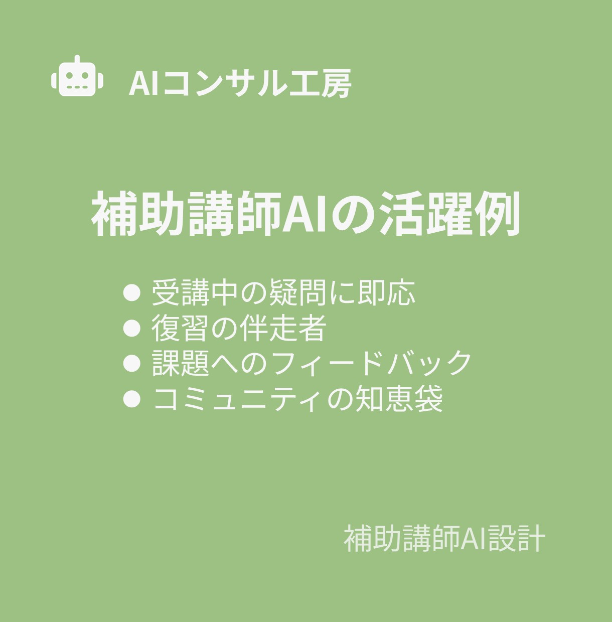 あなたの講座内容や課題をお聞きし、補助講師AIで何が実現できるか、具体的な可能性をご提案します。