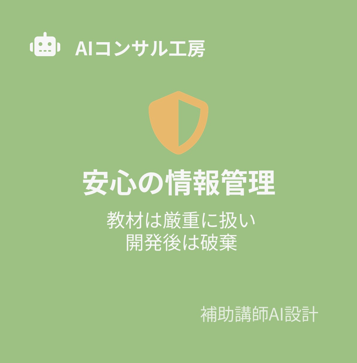ご提供いただいた教材や個人情報は、本件AIの開発以外に一切使用しません。